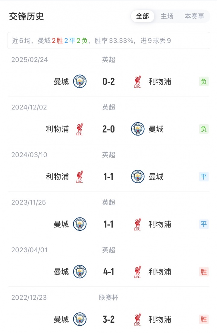 積分方面,曼城此前10輪19分,落后先賽的榜首阿森納7分;利物浦則落后曼城1分。